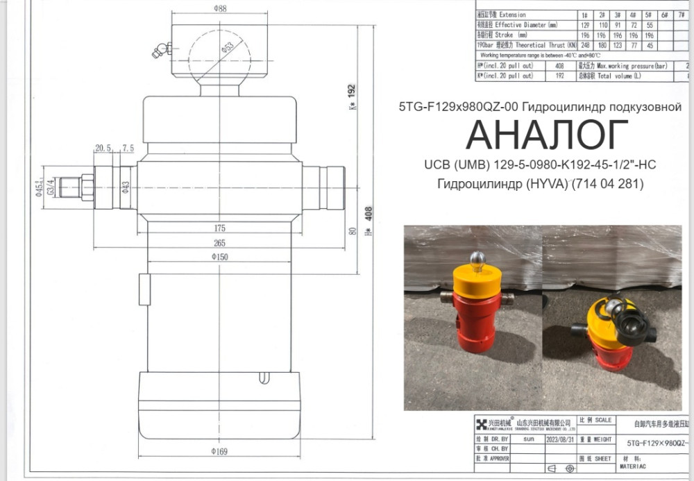 Гидроцилиндр подкузовной 5TG-F129х980QZ-00, артикул: UMB 129-5-980-K192-45-1/2"-HC (HYVA) (714 04 281) из категории Каталог товаров по цене договорной рублей.